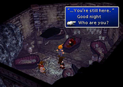 "Talk about Sephiroth." (¼¼ÇǷνºÀÇ À̾߱⸦ ÇÑ´Ù.) ¡Û